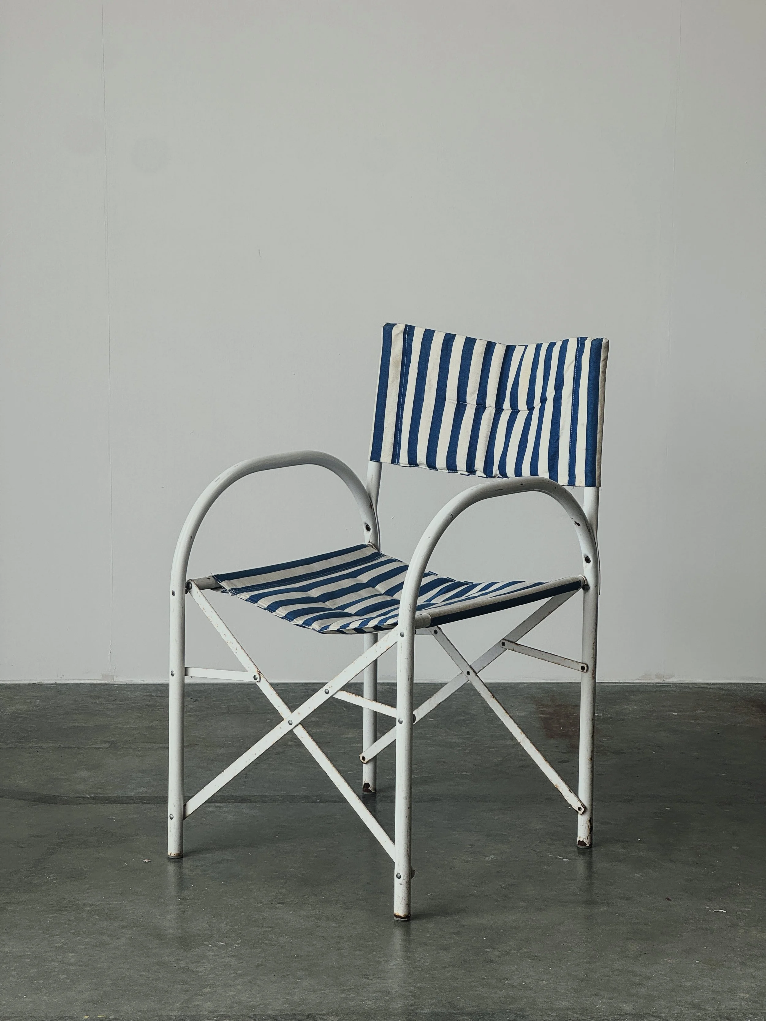 Blue and white stripped folding chairs